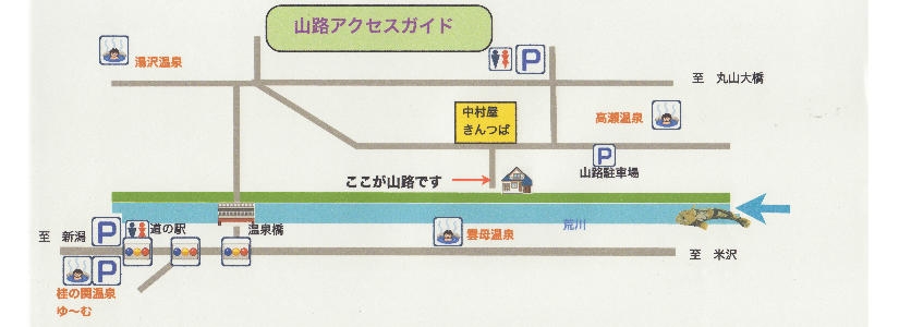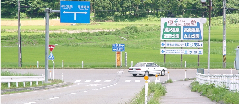 新潟方面からは日本海東北自動車道を北上し「荒川・胎内IC」から国道113号を米沢方面に向かいます。約25分で高瀬温泉です。