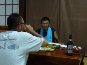 二人の師匠を川に残し、先に宿に帰る。後で話を聞くと上流の瀬で結構釣れたと報告があった。