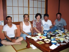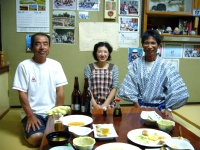 どこで釣ってきたのか解らないが、夕方7時頃に帰って来た。釣果は前日同様、3人で100匹は釣ってきたそうだ。預かっていた鮎を手に帰京していったが目一杯楽しんだKさん達であった。