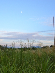 鮎釣りも終盤である。なにか物悲しいような秋空に月が昇っていた。