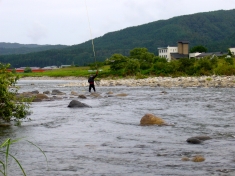 今日は3人を大石川に案内する。「後で見にくるから、釣ってね」と言葉を残し宿に戻る。宿に帰ると別組のお客さん、一組は女川に、もう一組は大石川を勧める。荒川を勧められないのが残念で仕方ない。