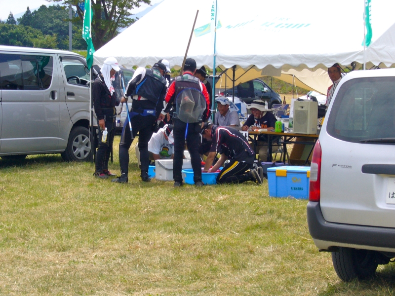 一回戦では上流に入った師匠、3時間後に会場で釣果を聞くと17匹とのこと。「突破は微妙」と言っていたが16匹以上が2回戦へ出場できることになった。因みにトップは30匹のダントツであった。