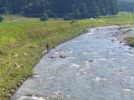 「行くよ、所用があるので後からね。場所が決まったら連絡頼むね」そんな会話を交わしてFさんは女川に向いました。2時間程遅れて朴坂橋で待ち合わせです。橋の上流には数名の釣り人が居たものの下流が空いています。水量は多めですが濁りも無く、何とか釣りは出来そうです。ただ、6月23日の豪雨で垢が飛んでいるので釣れるか心配です。先に別の場所に入ったFさんの話では昨年は石があった場所が砂で埋まっていて釣りにならないとのことでした。