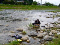 オトリを確保する親父時計を見ると11時近くになっていた。1時頃には師匠が着く予定なので急いで数匹は釣らなければ・・。前日に荒川で竿を出してみたが釣果は良くなかったので大石川で確保することにする。