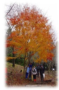 (山頂付近は少し紅葉し始めていて、真っ赤なウルシがきれいでした。夏の猛暑の影響か、枯れた葉っぱが多くみられました。)