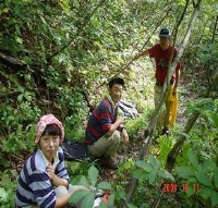 車3台で上の沢に向かい駐車場に着くなり、子供たちの「早く行こう!」の催促に出発。冒険気分で吊橋を渡る。早速、山菜を取りながらあたりを見るが、分かる人、分からない人・・さまざまだ。