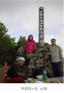 12時15分に出発し山頂へは12時25分着。山頂は日曜日とあって大勢の登山者で賑わっていた。記念写真を撮る。