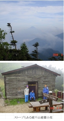 雨まじりの日はあったかい豚汁がとても美味しかった。 1時10分下山。この頃から晴れ間が出て、視界がよくなった。
