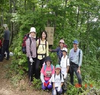 能化山 の道標を囲んで皆で記念撮影後14:00下山開始し14:30登山口に到着。