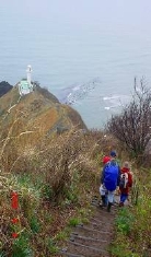 程よく実ったキュウイフルーツ棚を横目に見ながら歩くこと15分、登山口に到着する。この頃には、雨も上がり枯葉でフカフカになったなだらかな道を登って行く。遠くで電車が走り去る音が聞こえてきて、ちっちゃなカエルがピョーンピョーンモゾモゾと枯葉の中にもぐっていく。そのうち急な上り坂となり枝々につかまりながら登り12:30頂上に到着。