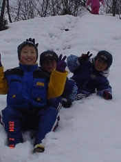 子供たちはお昼飯もそこそこに走り回っていました。小柴さんのユウキくんも汗びっしょりになりながら、トモヒロくん、タカシくん、サトシくん、ノブヒコくん、トモミちゃんについて小屋の中に入ったり木の枝を持って遊んでいます。