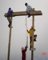 前日からの雨も上がり好天に恵まれた山行でした。鐘を吊り上げてからのペンキ塗り。