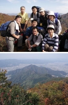 昼食は、皆で持ち込んだご馳走を分け合い、大宴会で盛り上がった。私の山と酒飲み仲間も感激し、特にツヨミさんの肉と、高橋さんのケーキが気に入った様子で、また行事があったら連れて行ってもらいたいとのことで、10月22日の金城山の計画にも参加することに決定した。宜しくお願いします とのことです。