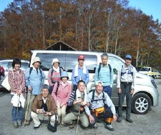 須貝会長の車が大きかったので助けられた感じだ。登山口迄の長い道中、私が乗車していた車のメンバーは私以外に渋谷さん、阿部さん、五十嵐さん、みなさん御想像の通り知的な会話、年金問題・北朝鮮問題・景気動向などなど今旬な話に盛り上がっていた・・・(笑)。