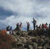 頂上に到着してみると人、人、人、溢れんばかり、昼食の場所はというと先発隊が確保してくれていた。・・・”ありがとうございます”。ひとかかえほどの鋭利な岩が一面にゴロゴロしている状態、椅子とテーブルを岩でセッテイングし昼食となる。