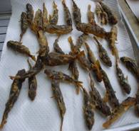 続々とカジカが取れる。小さくて小石と同化しているすばしっこいカジカは、
