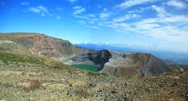 6:00に新発田を出発、通いなれたR113を山形へ、途中の荒川渓谷は紅葉にはまだ早いようだ。8:55に蔵王エコーラインの刈田駐車場に到着、早々にリフト脇の登山道をお釜へ、紅葉は中腹が見頃で稜線付近は終りかけているようだ。9:25にお釜に到着、刈田岳レストハウス付近にはすでに観光客でごった返している。眼下にはお釜がすっきり見え、天気は良好だが風が強く顔、手が冷たい、さすが1700mの稜線だ。観光客に追い立てられるように熊野岳へ向かう。こちら方面はハイカー、登山者の世界かと思いきや、山岳マラソンのトレーニングで走ってる人達がいる。山頂付近にはツアー登山か登山者の集団がみえる。荒涼とし岩だらけの稜線に電柱の様な冬期用の標識ポールが連なっている、中腹の紅葉とは別世界のようだ。10:10熊野岳山頂着、なんと鳥居にエビのシッポが着いている。天気は良く飯豊、朝日、吾妻の山並みが良く見える。寒いので小屋の中で休憩するが中で焚き火をした様で燻り臭い。11:00に小屋を出発、避難小屋経由で刈田岳へもどる。11:40に刈田岳到着、山頂からは太平洋が見え仙台の町がすぐ近くにあり、見覚えのある建物、道路が判るくらいだ。観光客の間を縫うように早々に下山する。