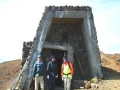 風の強い中 山小屋の外で宴会が始まり、遠藤さん以外山小屋で寝ることになった。