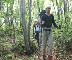 極楽峠を越えて最後の山菜採りポイントではコシアブラの木を達人が見つけ私に採れるから行けという。見ると斜面の下の方にあるが結構背が高い。どうやって採るのか何の考えなしで、行けというので大丈夫だろうと片手に傘片手には袋2つを抱えたまま歩きだした。すると「そんな両手に荷物もってたらだめだろ!」の声。それもそうだと荷物を置いたがそのままア~レ~と尻からずるっと滑り落ちた。私は木の枝を片手に斜面に仰向けに寝そべってしまった。