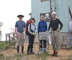 あっという間に展望台。小屋にリュックを置き、テーブルをセットし山頂まで歩く。みんな揃ったところで、はい、チーズ!
