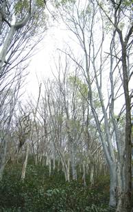 芽吹いたばかりのブナの木々が「トトロの森」のよう・・