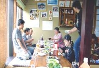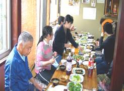 気持ちが焦っていたのか、ようやく旅館山路さんに到着して早速調理を始める、腹が減って今にも食べたい気持ちをグッと抑えて、自分でもできる仕事を手伝った、その間遠藤さんとビールを飲んでしまったが・・・。料理が出来上がり待ちに待った山菜パーティー、混ぜご飯に、てんぷら、ひたし、蕨の醤油漬け、山菜のペースト、やはりプロがメインで調理しているので最高である。日本人で良かった、この会に参加出来て良かったと改めて思ったしだいです。腹もふくれリラックスタイムには須貝会長の写真を鑑賞し山や景色の美しさに堪能しながら、その場に行きたいと衝動に駆られた。本当に今日はハッピーデイでした。 記載:小林(和)