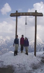 親不知に到着しウェストン像や親不知の模型を見てしばし観光後登山口へ。8:00頃登り始め 到着目標14:00頃、6時間あまりの試練が待ち構えている。自分はビールをあおりガソリンの補給、そのガソリンは30分 ほどでガス欠に、体にムチ打ち遠藤さんらについて行く、遠藤さん、武藤さんは何食わぬ顔でトントンと登っていく、1時間ほどで待ちに待った休憩、まだ1/4までも登っていない、辛いほど頂上での達成感が倍増する、気合を入れ目指すは頂上山小屋、途中車が通れるほどの山道を横切るが複雑な気持ちになる、しかしその道で昼食&横になって休憩、体にエネルギーが戻るものの最後の登山口からの登頂、ここがスゴすぎかなりの急勾配で工事現場のような単管で作った鉄製の階段がいく段もいく段も、もうバテバテ 遠藤さん、武藤さんははるか彼方へ・・・、頂上まで2/3ほど行くと天然の水のみ場があり2人は待っていてくれた、たぶん待ちくたびれたと思う、14:30なんとか頂上山小屋に着く、やっと小屋で休憩だと思いきや、明日のウェストン祭の準備ということで小屋に入れない危機に襲われた。中から牙むき出しの猛獣が・・・しかし猛獣のボスが理解を示し泊まることが許された。怒り心頭の遠藤さんは避難小屋でもある山小屋の存在意義が損なわれている・・との事、そういえばたしかにそうである。自分の心境としては、バテバテでそんなことはどうでもよく、何を言われようが休ませて欲しかったのが正直なところであった。