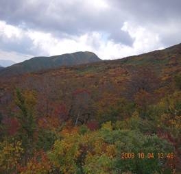 また右側の素晴らしい紅葉をリフトに乗りながら下りました。14:00駐車場着、月山志津温泉(800円)に入浴しました。阿部さん、岩渕さんは「なめこ」などを買いました。帰りはドライブを兼ねながら18:00五十公野Pに到着しました。本日の車代は約2,000円でした。一部高速料金も入っています。 (報告 : 五十嵐)