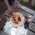 その前に山田さんのカメラでハ~イパチリです。山菜採りだけの参加と思っていた菊岡さんがデ~ンと皆の中に(端に)座っていた。気を遣わせないモンテの人達だから居心地が良かったのだろう。