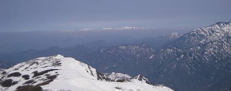 山頂からは富士山、後立山連峰、槍が岳、八ヶ岳など日本の中部高地の山岳地帯の山々が見渡せました。 最高の天気、眺望でした。