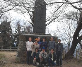 今月の月例山行は、大河ドラマ・直江兼継ゆかりの坂戸城に行く事になった。最初3人だけかと思いきや、なんと盛況で9人もの人数にふくれあがり、そのうちゲストの鈴木さん、以倉さんも飛び入り参加で決行した。