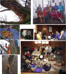 天然の「なめこ」がびっしりついている木を見つけ、雨傘いっぱいのなめこを採ったり、