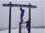 雨天の予報なので五十公野公園駐車場の集合時間を一時間遅らせて、7時に阿部(健)、阿部(ツ)、菅原の三人で小雨の降る中 二王子神社へ。神社には他の車はない。雨具を着て登り始める。独標を過ぎたあたりから雨の代わりに霰が少し降ってきて 足元は雪が現れ始めた。頂上に着くが誰もいない。ガスのため飯豊はぜんぜん見えないが新発田方面は少しだけ見える。積雪は5センチくらい有り、鐘や塔には雪が付いている。小屋から脚立を持ってきて上がり、カラビナを外そうとしたが凍っていてネジが回らない。お湯をかけたらすぐに解けて、外して鐘を降ろす。新しい塔は高さが低く簡単に降ろすことが出来た。鐘を小屋にしまい昼食にする。ビールで乾杯をし小屋の中の温度計を見たらマイナス1度だった。寒いはずだ。阿部さんが持って来た「すき焼き」をいただき温まる。食事が済み小屋から出ると外は雪や雨は降っていない。ガスで景色はほとんど見えないまま下山しました。