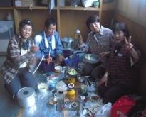 5:00 早々に朝食を済ませる。外は相変わらず風雨が強く小屋の中ではびしょ濡れになりながらテントを飛ばさ