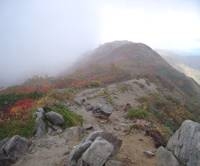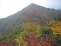 稜線付近は風雨が強く何も見えませんでしたが、登り下りの途中では素晴らしい紅葉を見ることができ