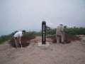 6:45 雨の大朝日岳到着。風雨強くなにも見えない。記念撮影をして早々に下山する。