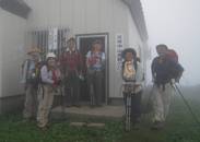 皆で、頂上へ。9人揃って記念撮影をしてから小屋に戻りました。