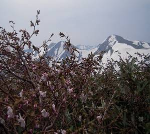 8:30 西朝日岳到着。雨は少し弱まったようだ。数パーティに会う。我々と逆のコースのようだが雨の中、大朝日の