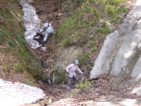 沢を渡り、ウルイのある斜面を見上げると丁度食べごろである。高橋先輩は6歳年上なのだが簡単に斜面を