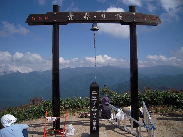 8時40分山頂着、青春の釣鐘塔の前でこれから二王子~門内へ向かう二人組みと挨拶を交わす(前