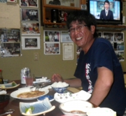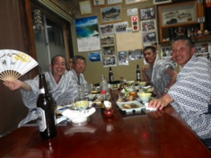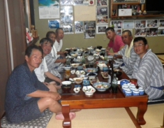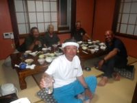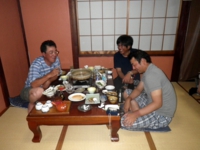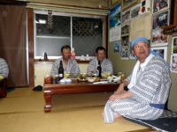 KSYの3人とFさん高根川で釣りを楽しんだ3人組が宿入りする。夕食時に楽しかった話を親父にしてくれた。