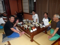 釣果は30匹ほどと教えてくれた。「今年の女川はどうですか」と聞くと「鮎は大きいけど数が少ない」と話す。しばらく会話をしていたら彼の仲間が釣りに来たので、親父達は宿に帰る。夕方、栃木の渋井さんグループが宿入りする。話を聞くと午前中は荒川で竿をだしたが釣れなかったらしい。「水も多く、小さいゴミが流れていてあれでは釣れない。ただ、鮎はいるよ。今年の荒川は数年ぶりに良いと思うよ」と嬉しい一言であった。午後から大石川に行って2時間ほど釣って15〜20匹の釣果だったらしい。