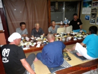 夕方、石渡さん達が女川から帰ってきた。釣果はそこそこに釣れたと話す。その後、師匠達も戻り、Dさんも帰ってきた。