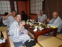 私たちはヤマメ釣りです話が面白い、誰も行かないピンポイントの穴場があるらしい。1人しか竿を出せないのにHさんはそこが好きで三面川に来ると必ずそこに行く。自ずと他の3人は閉出されるのでブーブーである。メンバーの誰か曰く「昔、良い思いをした女がババァになったのに、いつまでも通う様なものだ」と。その話を隣のテーブルで聞いていたSさん。その場所に行って見たいからと話に入ってきたから、ややこしくなった。いくら口で教えても解るわけがない。Sさんは三面川で釣りをした事が無いのだ。それなのに、そんな5mくらいのピンポイントを教えるなんて・・。親父はHさんに「明日、一緒に行ってこの場所だよと教えてやれば・・。」そうだ、そうだと周りは賑やかだ。最後にSさん曰く「明日の朝、素面になったら、連れて行ってくれるかどうか聞きますから」。たわいもない話に夜は更けるのだった。