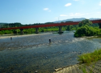 一旦宿に戻り雑用を済ませて釣り仕度をして女川へ。朴坂橋の下流に入ってみましたが釣れません。先日の増水で砂が流れ、垢が飛んだ様です。やっと一匹釣って川から上がりました。他の釣り人も釣れない様でした。帰りに荒川で竿を出してみました。温泉橋右岸の橋の下で1時間ほど・・・やっぱし釣れない。午後3時で水温は17度でした。垢が付くまでもう少し待った方が良さそうです。