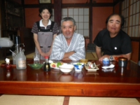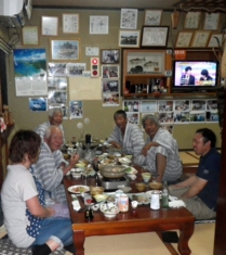 夕方の4 時まで釣って12匹、ここの鮎は17〜18cm とサイズが良かった。お客さんの夕食の時、情報集めにテーブルを回る。