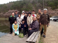 高野夫妻とお母さんが出迎えてくれた。特にお母さんの嬉しそうな笑顔が印象深い。 少し遅れて古沢夫妻が到着する。互いに知らない人も居るので各自を紹介して2台の車 に6人づつ分乗する。男性6名、女性6名の参加だったので丁度良いメンバー割を組め た。檜原湖からレークラインを通り土湯へ。道の駅に寄っては食べ物を買う。「ソフト クリームを食べるにはちょっと寒いね」と言いながら食べる。車中から観る磐梯山や湖 に心を癒し、岳温泉付近で小休止。楽しい会話に弾んでいると二本松まで時間が短い。 霞ヶ城は桜満開で見物人も多く賑やかだった。