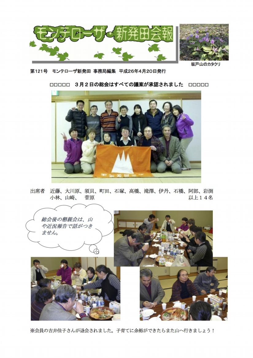参加者の皆さん お疲れ様でした。これからの登山は暑くなり、日差しも強くなりました、水分、サングラスと帽子は必 需品です、虫も出始めましたので虫除けや必要に応じてネットなどもお忘れなく。これからいい季節、皆さん、会山行に参加しましょう~?