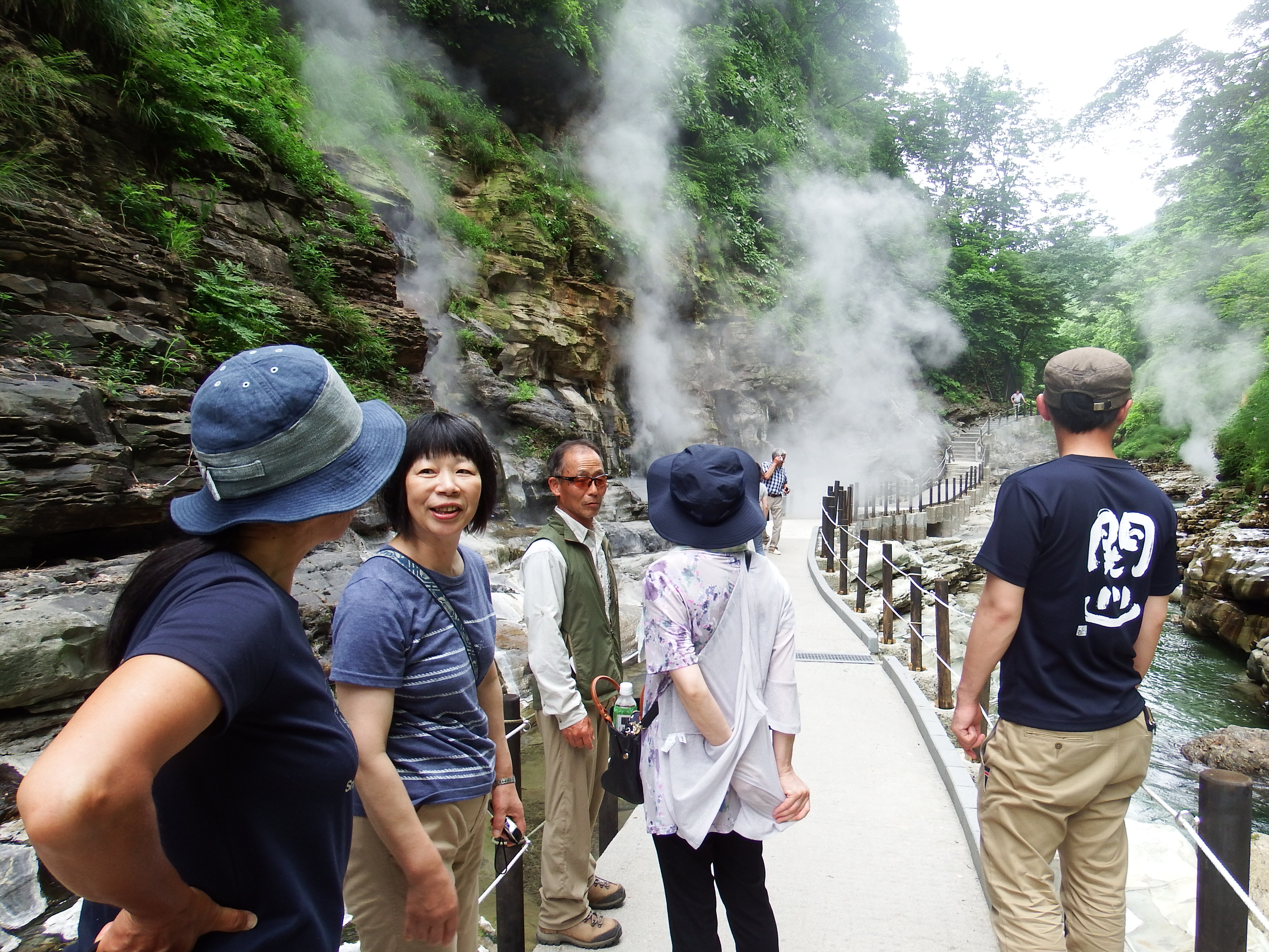 小安峡にて武家屋敷附近の探索とお土 産を買って10時頃に昼食を食べてから帰りに湯沢の小安峡に寄る。温泉の噴き出しを観たり、ソフトクリームを食べて観光を楽しんでから新庄、寒河江、小国から関川村に午後7時に到着して解散する。