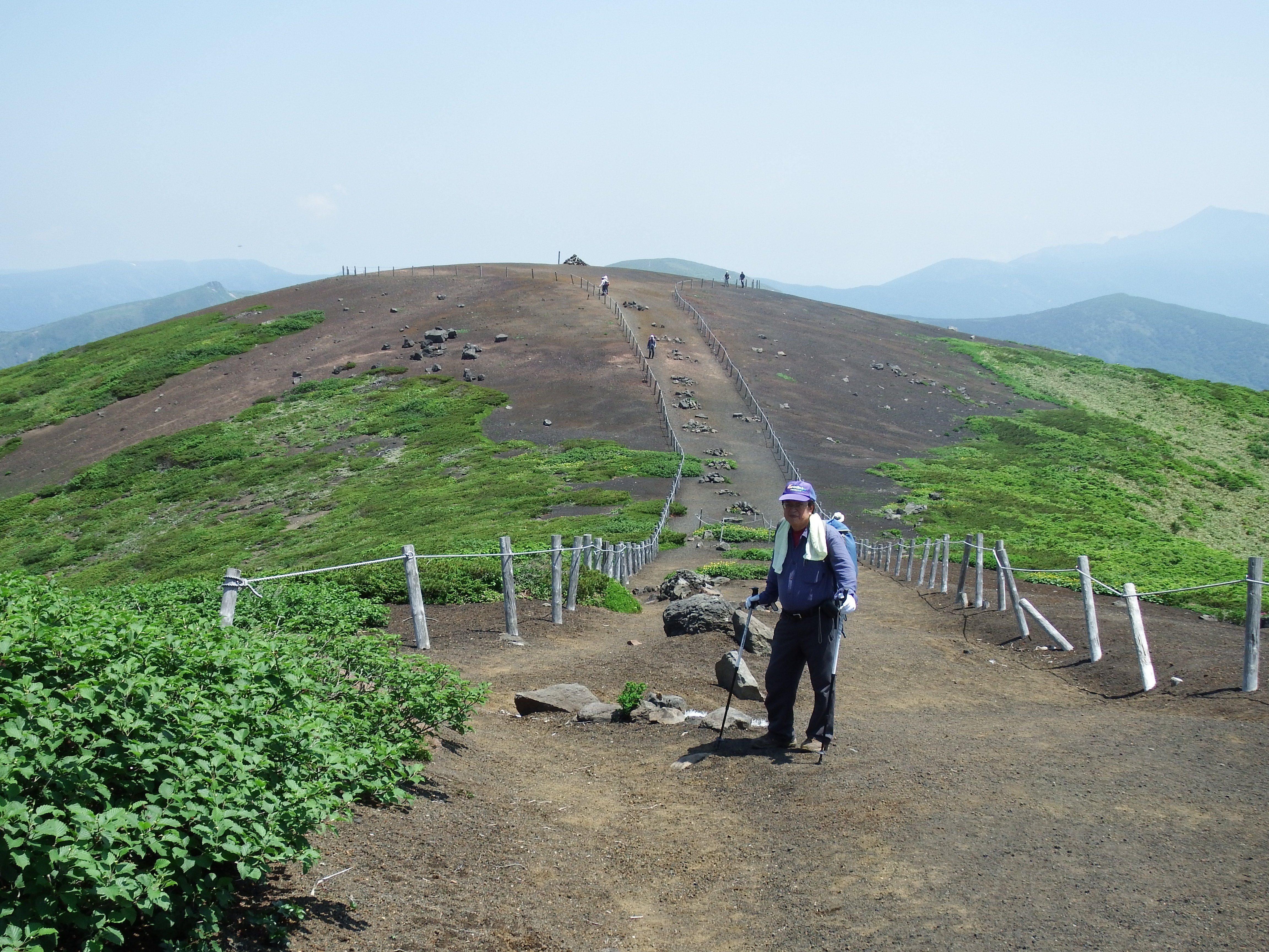 車道を登り始め途中、「ヒメサユリの小径」に入る。ヒメサユリは咲き始めで、3分咲き程度。つぽみが多く、花は新鮮な感じがした。他にレングツツジやヒメシヤガが咲いていた。 最近登り1時間程度の山しか行っていなく、多少甘くみたせいかパテ気味。何とか頂上にたどり着く。頂上では署かったが守門岳・浅草岳等が一望で最高の眺めだった。